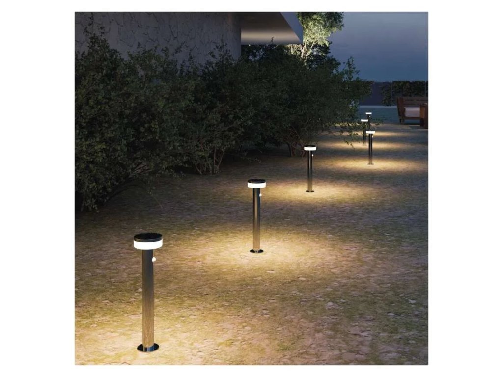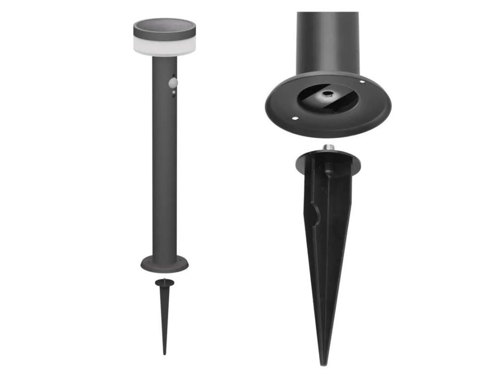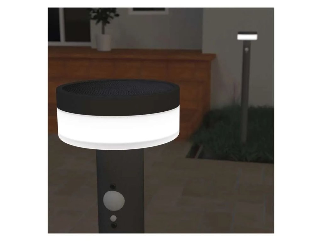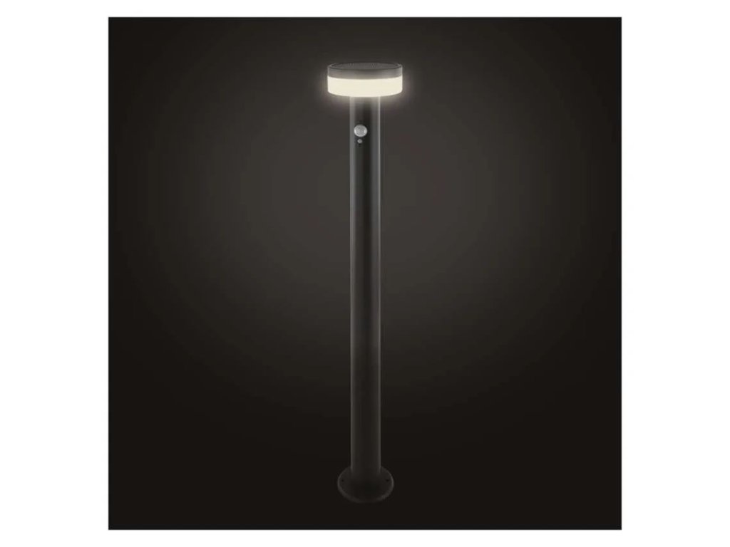 A modern, mozgásérzékelővel integrált TERION napelemes lámpa ideális választás kerti utak, felhajtók vagy teraszszegélyek megvilágítására. A karcsú, antracit színű hengeres kialakításnak, a rozsdamentes acél és a fehér műanyag diffúzor kombinációjának köszönhetően bármilyen külső térbe illeszkedik. A lámpa földbe szúrható tüskével és rögzítőtalppal is fel van szerelve a szilárd rögzítéshez.