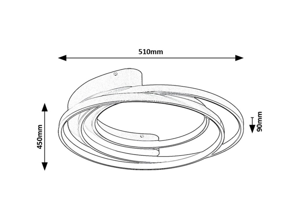 A lámpatest méretei: 510 mm átmérő, 450 mm magasság és 90 mm távolság a mennyezettől.