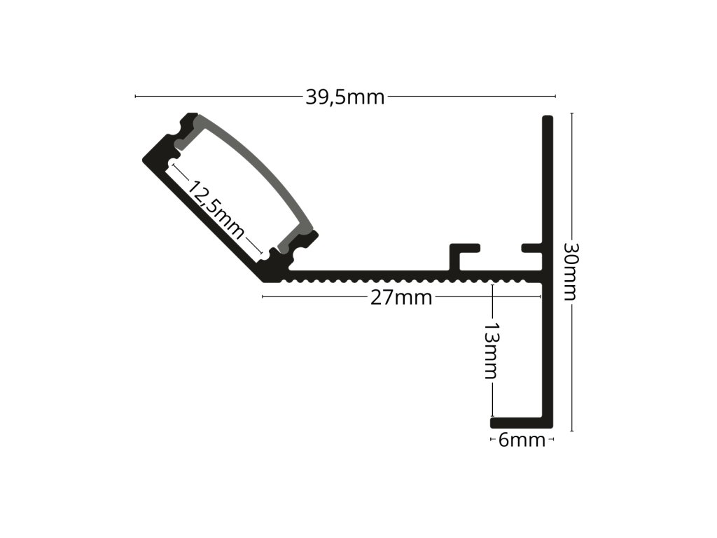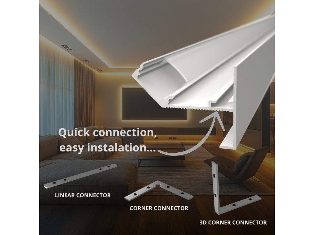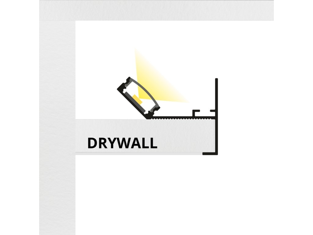 Ez a beépíthető alumíniumprofil vagy sín nemcsak a LED-szalagok hűtésére, hanem mint háztartása designelemeként vagy bútorkiegészítőként is szolgál. A profil az elülső éleket képező gipszkarton mennyezetekbe történő beépítésre készült.