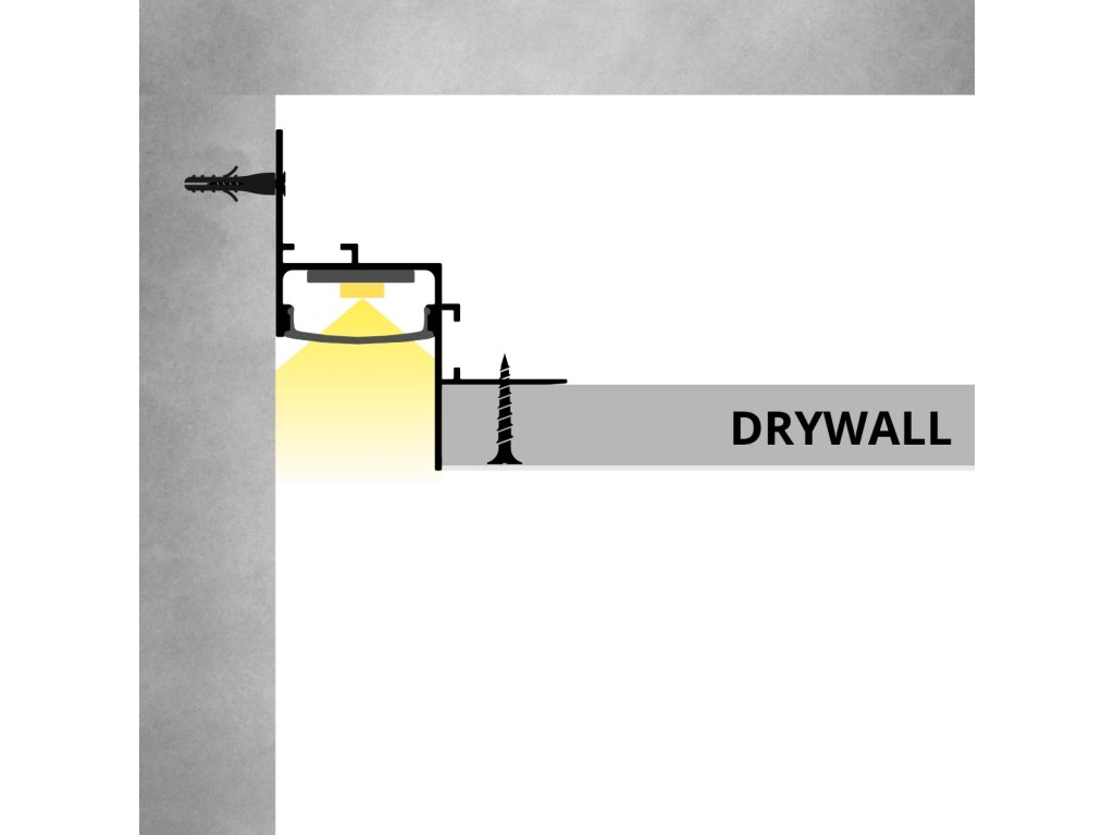 Először a profilt dübelekkel és csavarokkal szilárdan rögzítik a falhoz. Ezután a gipszkartonlapot rögzítik rá, megteremtve ezzel a tökéletes süllyesztett kialakítás alapját. A gipszkartonhoz való csatlakozást megerősítő szalaggal erősítik meg, és gondosan csiszolják, hogy a profil éle sima és folyamatos legyen. Végül a mennyezetet a profil széléig festik, ami egységes és stílusos világítási eredményt biztosít.