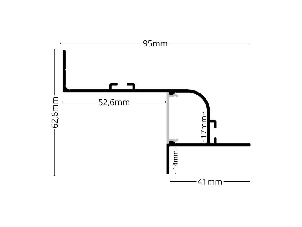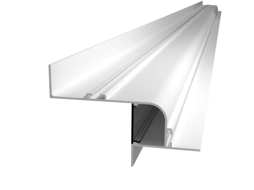 A profil a fal-mennyezet átmeneténél lévő gipszkarton szerkezetekbe való közvetlen beépítésre lett tervezve. Mechanikusan a falhoz rögzítik, magassága pedig a gipszkarton mennyezet szintjéhez igazodik. A gipszkarton lapokat ezután közvetlenül a profilra csavarozzák, így egységes és sík mennyezeti felület jön létre. A profil egyúttal elkülönített teret hoz létre a LED szalag elhelyezésére, amely a fényt közvetve a környező felületekre irányítja, és tiszta, elegáns fényhatást kelt a helyiség teljes kerületén.