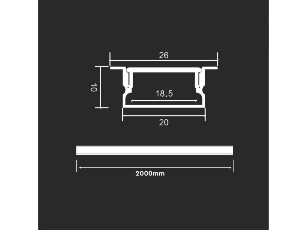 Beépíthető profil készlet LED szalagokhoz V39 2m