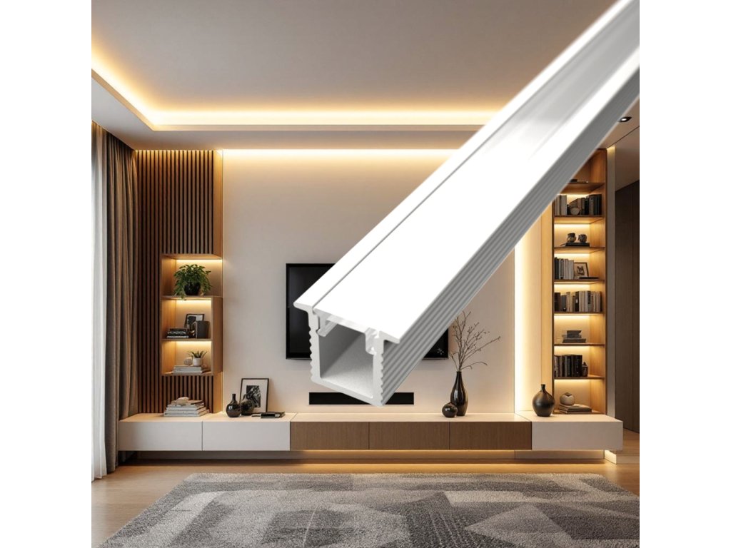 A telepítés úgy történik, hogy egy hornyot marunk a kívánt felületbe, amelybe a profilt ezután beragasztjuk. Az eredmény egy tökéletesen tiszta és egyenletes megjelenés látható rögzítőelemek nélkül, ahol a fény természetesen olvad össze a felülettel, és diszkrét és modern háttérvilágítást hoz létre.