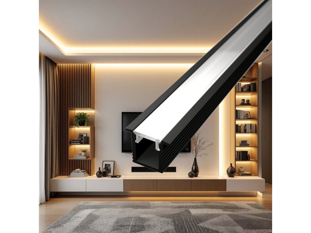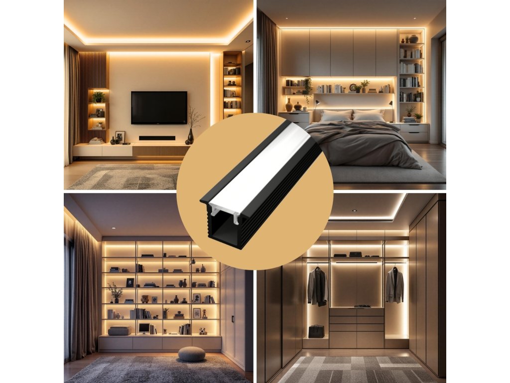 A telepítés úgy történik, hogy egy hornyot marunk a kívánt felületbe, amelybe a profilt ezután beragasztjuk. Az eredmény egy tökéletesen tiszta és egyenletes megjelenés látható rögzítőelemek nélkül, ahol a fény természetesen olvad össze a felülettel, és diszkrét és modern háttérvilágítást hoz létre.