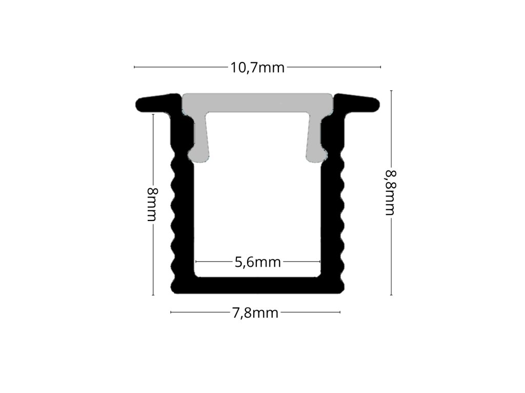 Ez a SLIM beépíthető alumínium profil vagy léc nemcsak hűtőborda a LED szalagokhoz, hanem design elemként is szolgál otthonában, vagy bútor kiegészítőként. Kompakt méretének köszönhetően a profil max. 5 mm széles LED szalagokhoz készült. Kizárólag süllyesztett szerelésre tervezték, és alkalmas faanyagokba, bútorelemekbe, polcokba, fiókokba, dekoratív panelekbe vagy 3D falpanelekbe való integrálásra, ahol nagyon feltűnésmentesen és elegánsan hat.