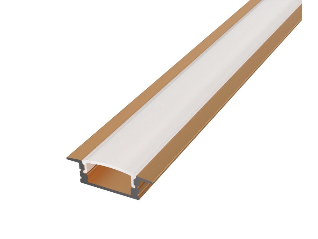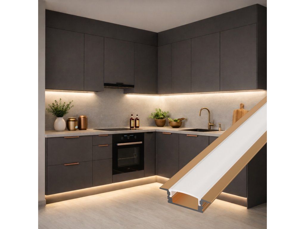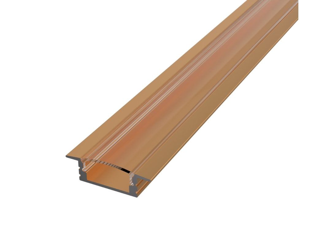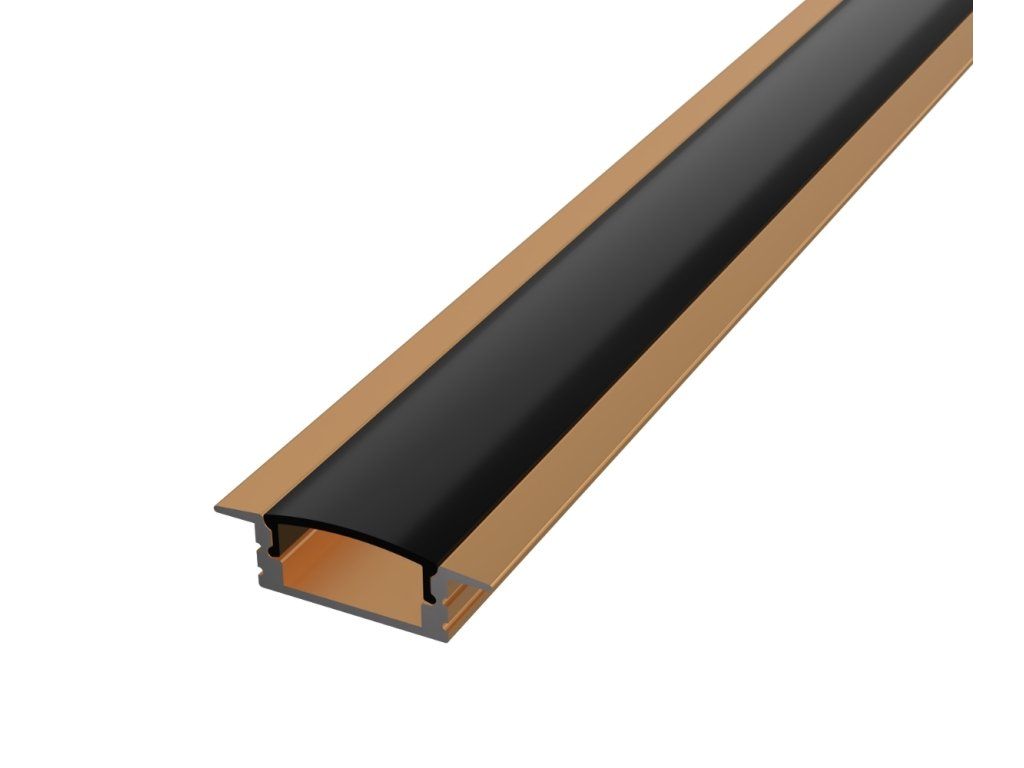 Az elegáns bronz kivitelű alumínium süllyesztett profil hűtőként szolgál a LED szalag számára, és egyben hangsúlyos dizájn elem is, amely természetesen illeszkedik a fa, kő vagy meleg fém kiegészítőkkel berendezett enteriőrökbe. Árnyalatának köszönhetően nem tűnik technikainak, hanem harmonikusan egészíti ki a modern és az ipari teret.