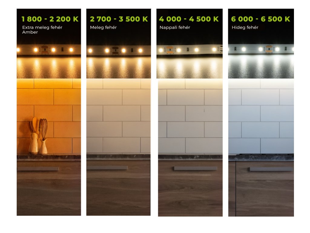 | A fény színe | meleg fehér, nappali fehér, hideg fehér |