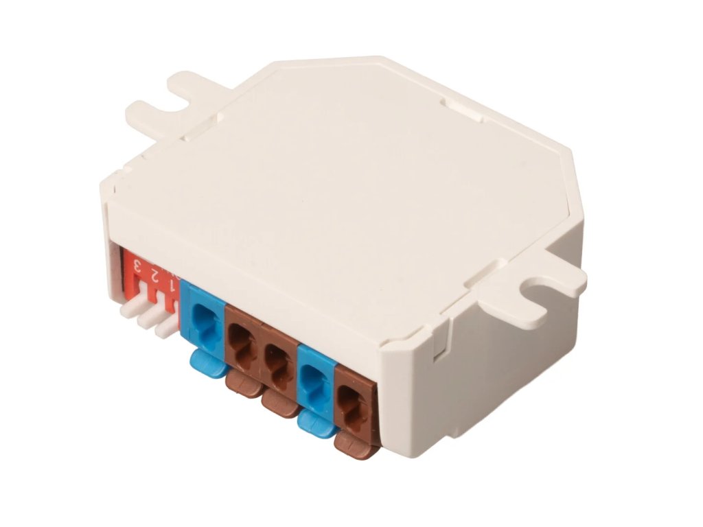 A vevőegység része egy csatlakozóblokk külső mechanikus gomb csatlakoztatásához, így a világítás nemcsak intelligens funkciókkal és távirányítóval, hanem klasszikusan manuálisan is vezérelhető. Ez különösen akkor praktikus, ha a vevőegységet közvetlenül a kapcsoló alá vagy a falban lévő szerelődobozba telepítik.