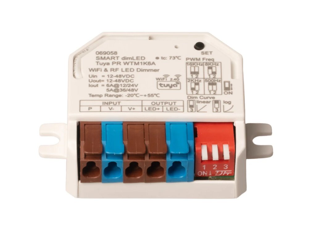 A vevőegység lehetővé teszi a világítás intelligens vezérlését a Tuya vagy Smart Life mobilalkalmazáson keresztül, bárhonnan a WiFi kapcsolaton keresztül. A világítás kényelmesen be- és kikapcsolható, valamint fokozatmentesen szabályozható telefonnal vagy táblagéppel, és a vevőegység integrálható okosotthonba is hangvezérlés támogatással, például Amazon Alexa segítségével. Ezzel egyidejűleg megmarad a teljes kompatibilitás a dimLED sorozat összes távirányítójával.