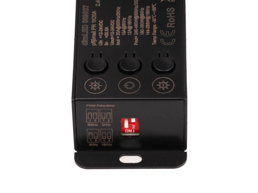 Ez a modell lehetővé teszi a négy PWM frekvencia egyikének beállítását: 500 Hz (20 A), 2 kHz (20 A), 8 kHz (15 A) vagy 16 kHz (12 A). Az alacsonyabb frekvenciák nagyobb teljesítményt biztosítanak, míg a magasabb frekvenciák ideálisak olyan telepítésekhez, ahol a villogás kiküszöbölésére helyezik a hangsúlyt – például videó vagy fénykép készítésekor.