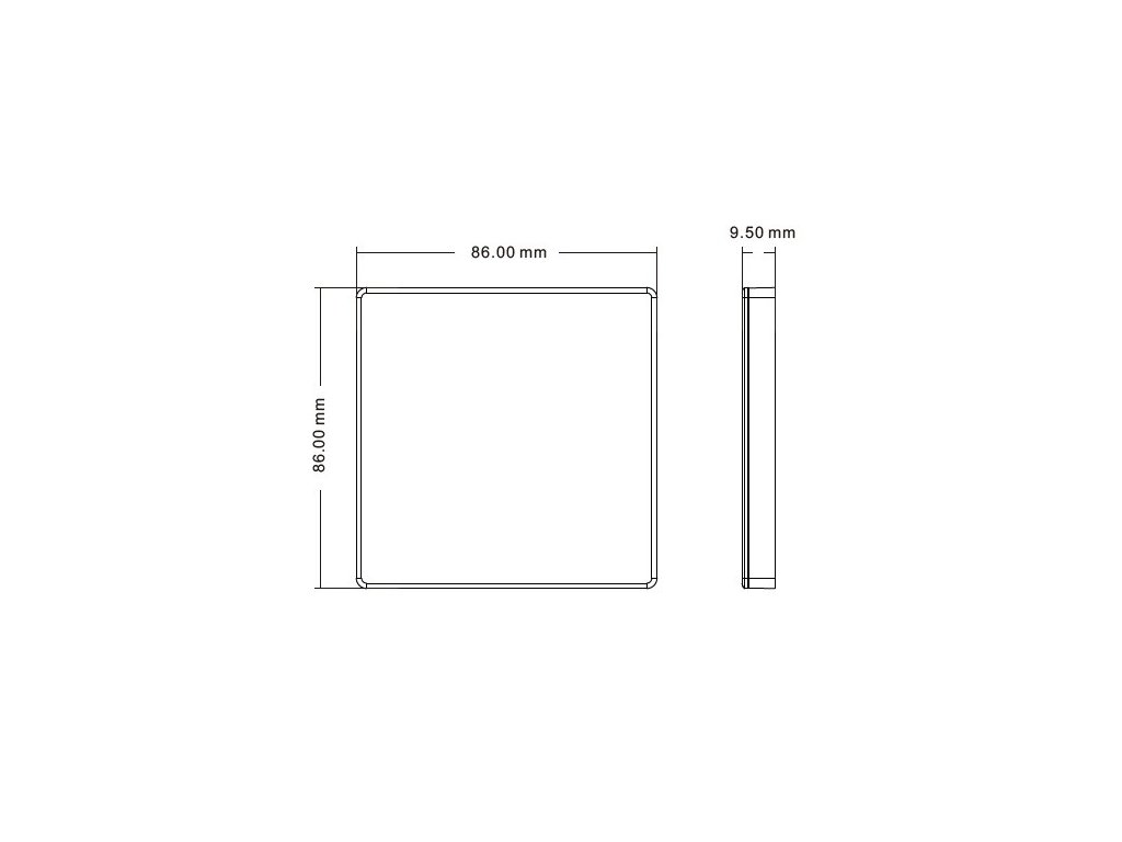 Méretek | 86 x 86 x 9,5 mm (szabványos EU-dobozba szerelhető) |