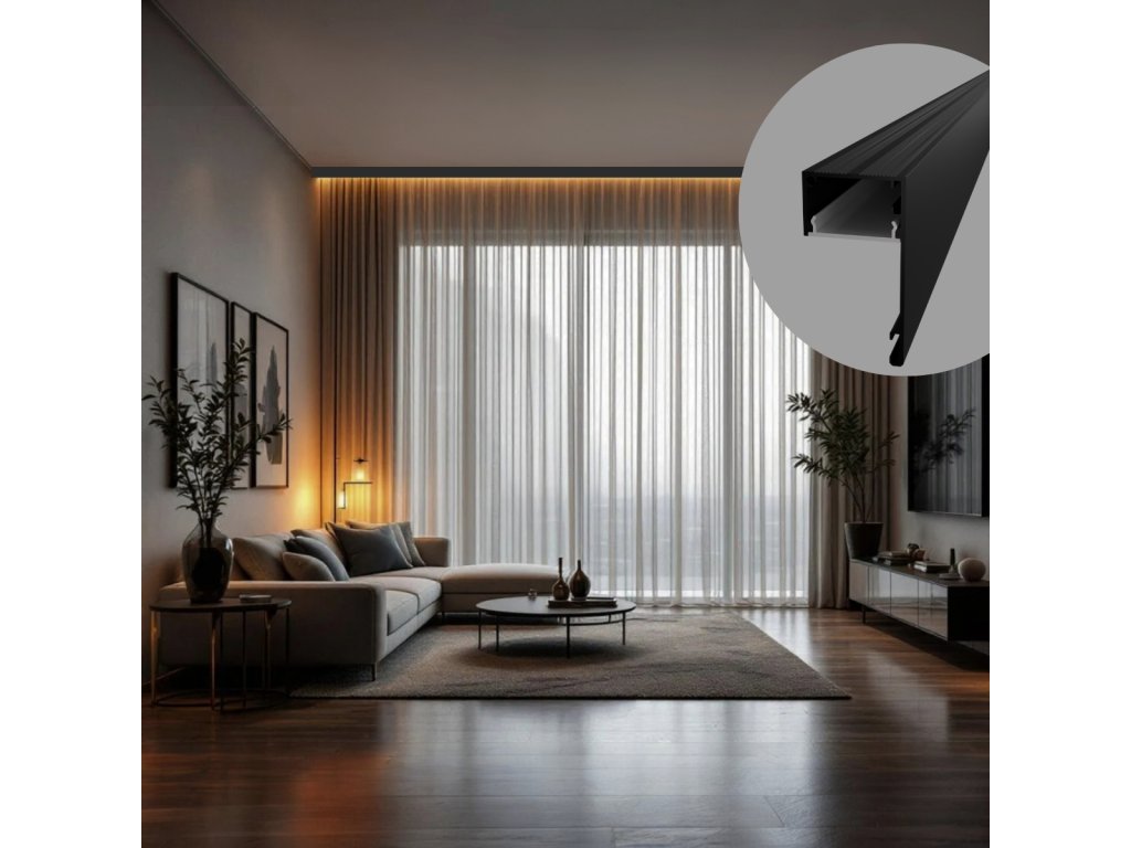 A profil ideális függönyök és drapériák területén való használatra, ahol lágy, indirekt háttérvilágítást hoz létre, kiemelve az anyagok textúráját és természetes mozgását. A fény finoman oszlik el a textíliákon, hozzájárulva a kellemes és nyugodt légkörhöz, különösen a nappalikban és hálószobákban.