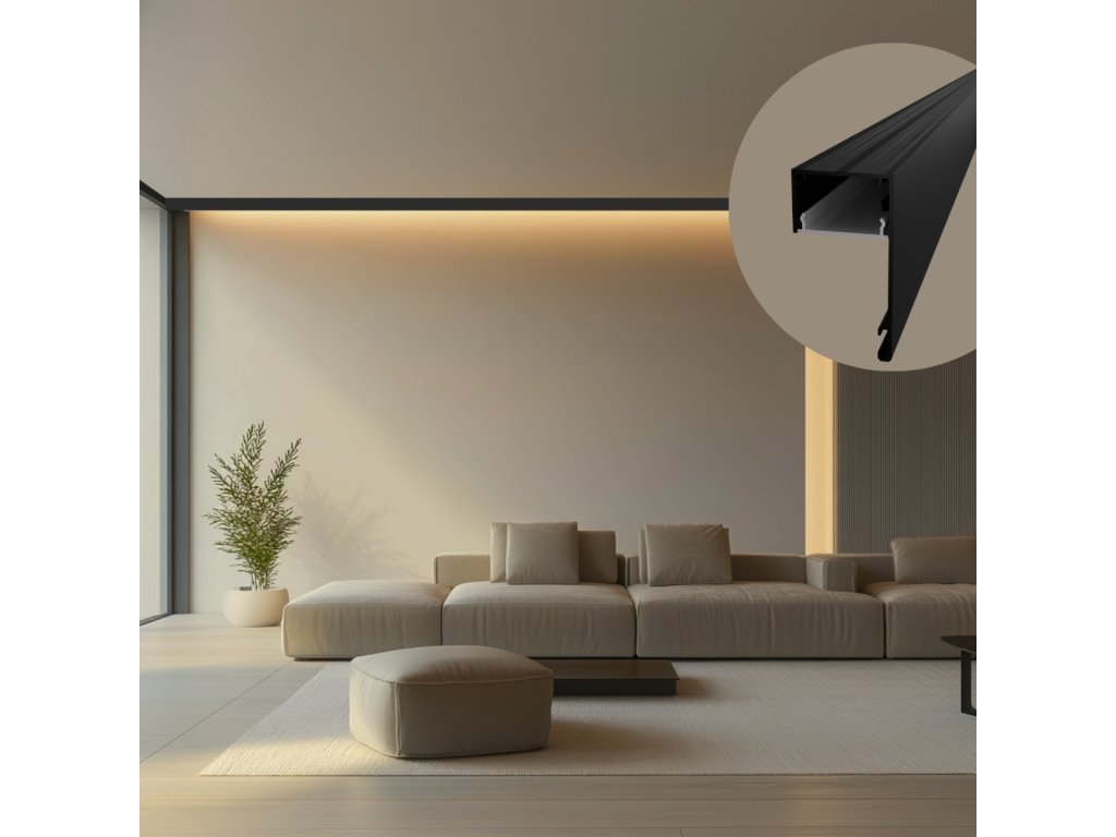 Ugyanakkor alkalmas falak indirekt megvilágítására is, ahol segít optikailag formálni a teret, kiemelni az építészeti vonalakat és vizuálisan megnagyobbítani a helyiséget. A mennyezetre történő felszereléskor a profil diszkréten beleolvad a szerkezetbe, tiszta, modern fényhatást hozva létre zavaró részletek nélkül.