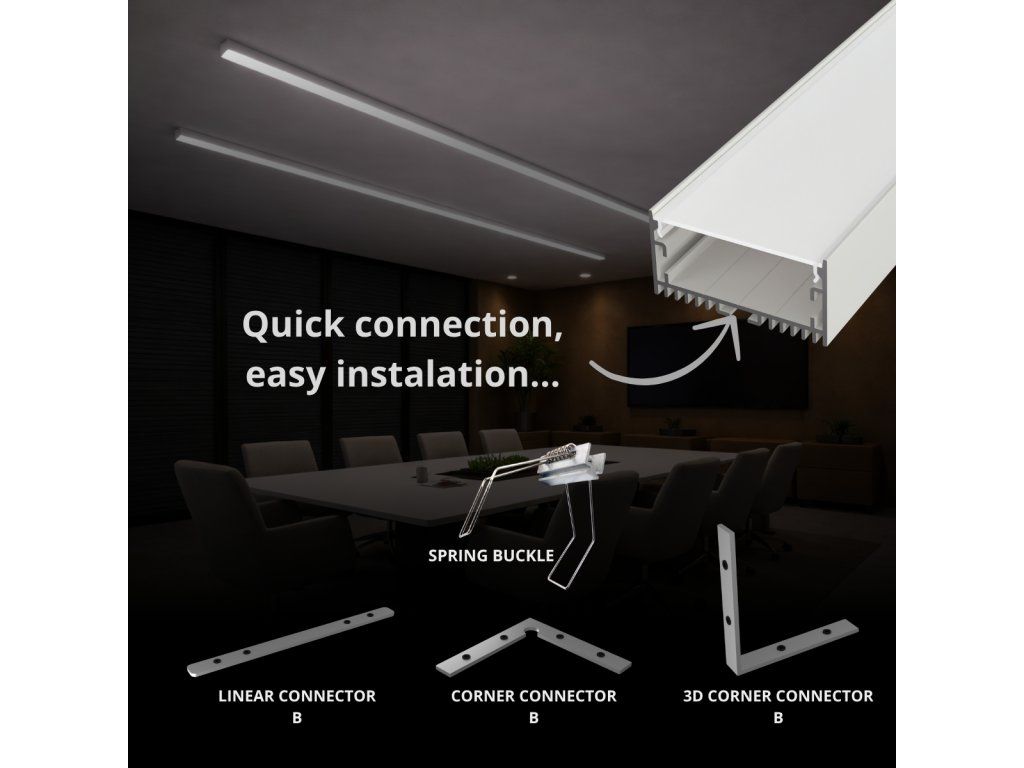 Az alumínium profil hatékony hűtőbordaként szolgál a LED szalag számára, és egyben dizájnelem is a tiszta, lineáris világítás kialakításához. Konstrukciójának köszönhetően alkalmas felületre szerelésre és más típusú telepítésekre is a rendelkezésre álló tartozékok felhasználásával.