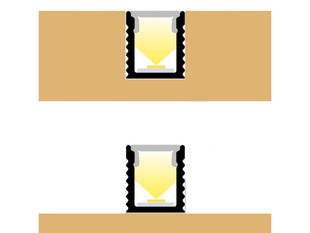 A profil rögzíthető tartókkal, ragasztással vagy csavarozással egyenes felületre, vagy beépíthető az anyagba a teljesen tiszta és egyenletes megjelenés érdekében.