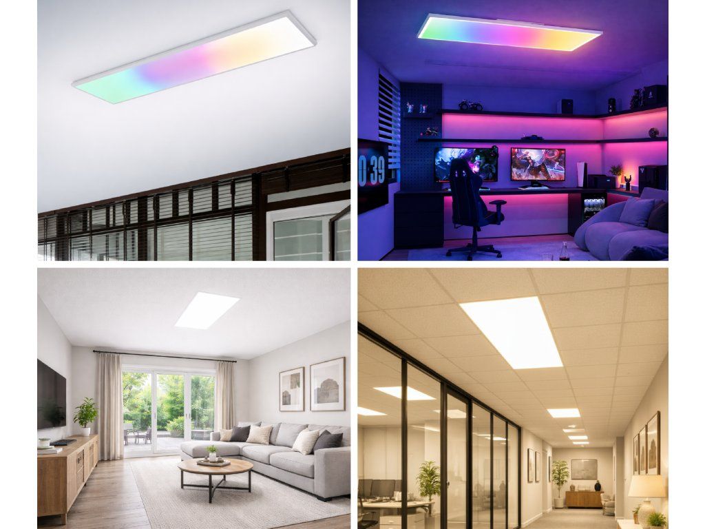 LED mennyezeti panel fehér kerettel és nagy fényerővel. Ehhez a modellhez RGB+CCT rGB színskálával változtatható, ugyanakkor a fehér fényhőmérséklet a következő értékek között mozoghat 3000K és 6500K között. Ez a panel különböző hangulatú helyiségek kialakítására használható. A 600 x 1200 mm-es 48 W-os panel tökéletes álmennyezeti alkalmazásokhoz. Leggyakrabban kazettás mennyezeteknél használják, ahol a panelt csak a hálózatra kell csatlakoztatni. A LED panel tápegység 24V-os egyenáramú kimeneti feszültséggel rendelkezik.
