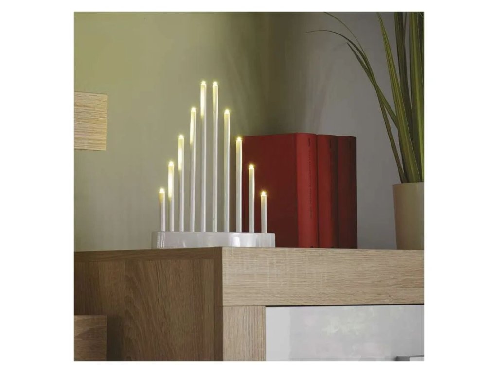 Fehér LED gyertyatartó, 24.5 cm, 3x AA, melegfehér, időzítő