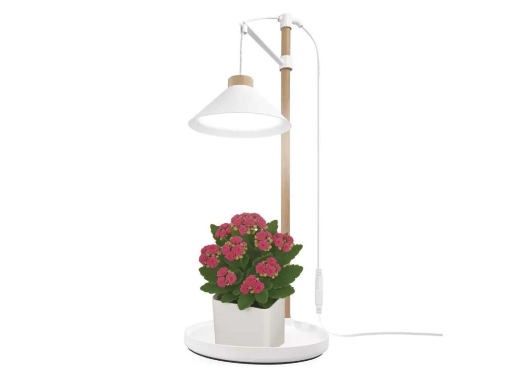 A fehér fém kivitel és a fa elem kombinációjának köszönhetően a növekedést segítő lámpa stílusos kiegészítője a belső térnek. Kiválóan alkalmas nappalikba, dolgozószobákba, irodákba, recepciókra vagy kávézókba, ahol a növények növekedésének támogatása mellett dekoratív funkciót is betölt, és természetesen illeszkedik a modern térbe.