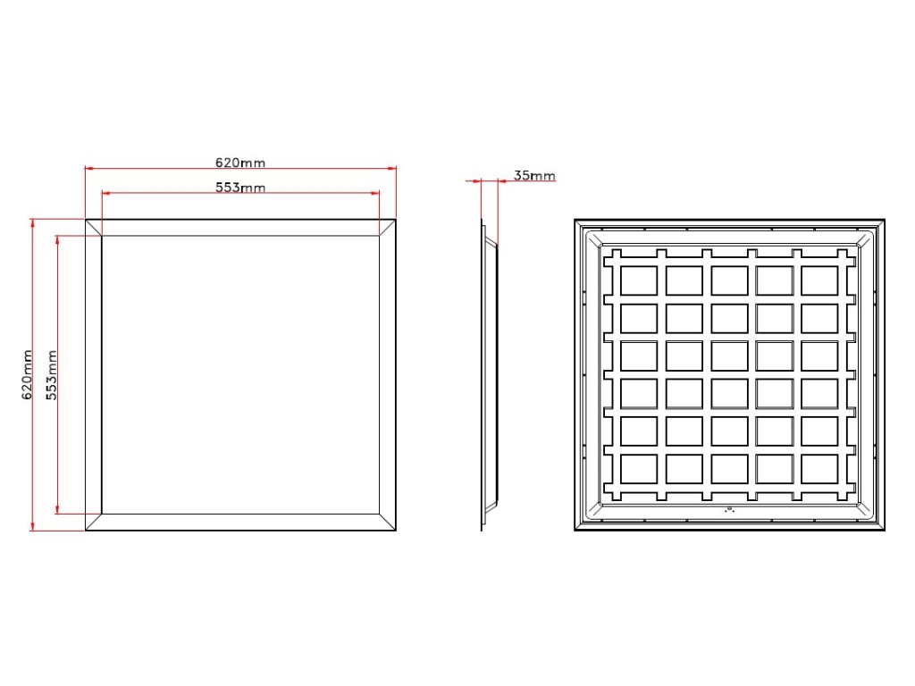| Méretek | 620 x 620 x 35 mm |