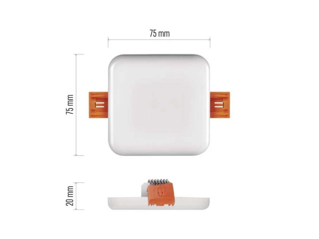 Elegáns négyszögletű LED-panel 6W teljesítménnyel és 75 x 75mm méretekkel, amely megfelelő megoldást kínál a mennyezetbe vagy a falba történő szerelésre. A magasabb fokú IP65 IP-védettségnek köszönhetően kiválóan alkalmas fürdőszobákba vagy külső terekre. A süllyesztett lámpák kategóriájába tartozik, a panel rögzítéséhez szükséges rugókkal együtt kapható. A mennyezetbe 55 x 55mm méretű szerelési nyílást kell készíteni. A panel fölött nem szabad semmilyen tömítő anyagnak lennie, amely akadályozná a LED-panel hűtését. Ez a LED-panel villamosenergiát spórol és egyben fényt ad otthonának.