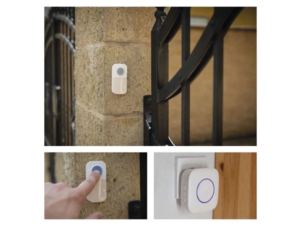 A 433,92 MHz-es frekvencián működő megbízható vezeték nélküli átvitel akár 150 méteres hatótávolságot biztosít szabad téren, így a csengő könnyedén lefedi a nagyobb épületeket is. A legfeljebb 8 gomb párosításának lehetőségével több bejárathoz vagy irodai helyiségekhez is alkalmas. Egy gomb tartozik a csomaghoz, és az IP55 védettségnek köszönhetően ellenáll az esőnek és a kedvezőtlen kültéri körülményeknek.