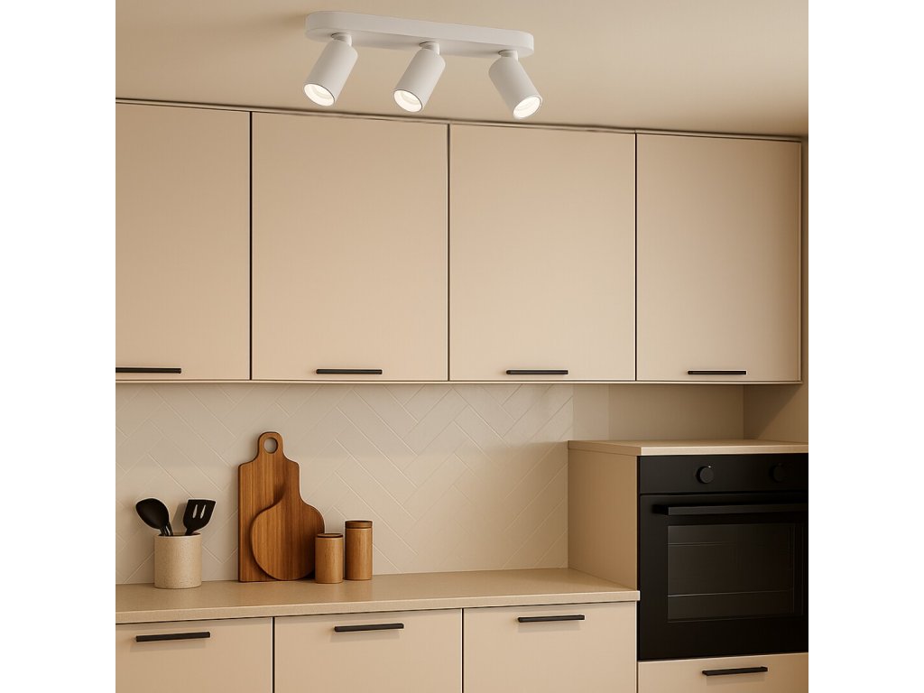 A három fényforrással rendelkező Yorli mennyezeti lámpa funkcionális és célzott világítást biztosít a modern belső terekben. Egyszerű formája, letisztult vonalai és fehér kialakítása univerzálissá teszik, így lakó- és technikai terekbe egyaránt alkalmas.