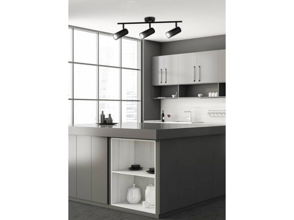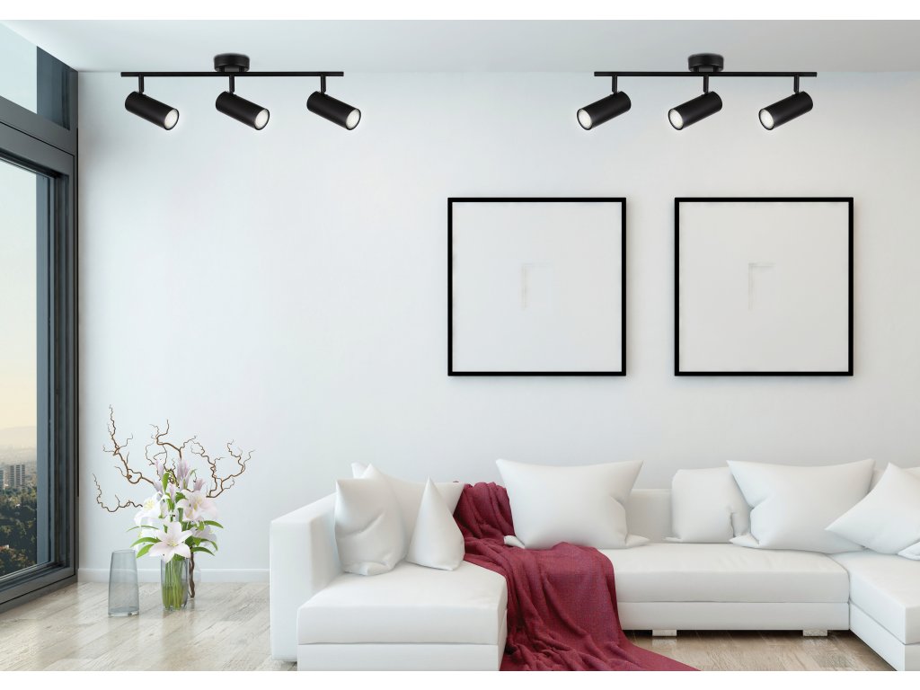 Spot LED lámpa 3x GU10 foglalattal, max. 15W teljesítménnyel. Ennek a lámpának a mérete 560x180x90mm. Előnye, hogy az árnyékolók dőlésszöge különböző irányokba állítható, és így a fényt pontosan oda irányíthatja, ahová szüksége van rá. A lámpatest fekete fémből készült.