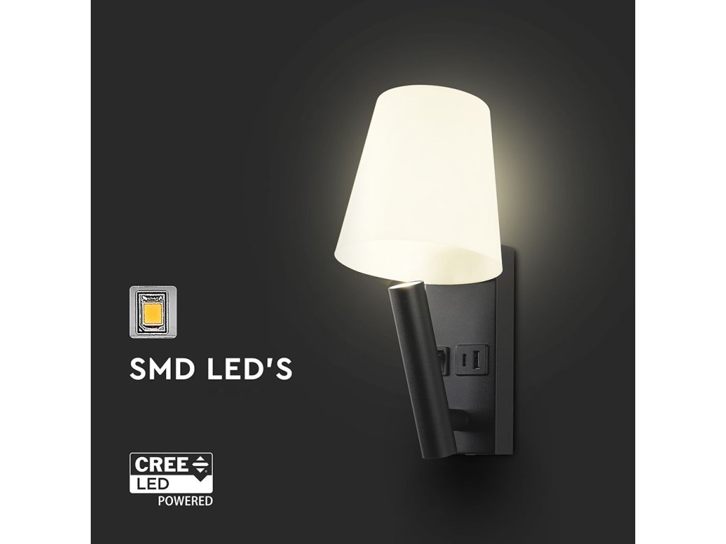 Fekete fali LED lámpa USB/PD töltéssel egyesíti a modern dizájnt, a praktikus funkcionalitást és a megbízható teljesítményt egy elegáns megoldásban. A kiváló minőségű CREE LED chipeknek és az SMD technológiának köszönhetően stabil fényerőt, hosszú élettartamot és nagy megbízhatóságot kínál, így ideális választás az éjjeli szekrény mellé a hálószobába, szállodai szobákba, butikokba és modern belső terekbe.