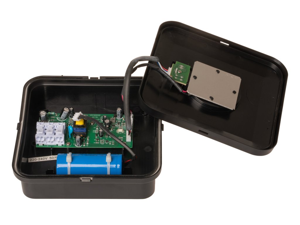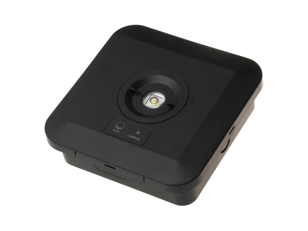 A protipanikus, mennyezeti LED vészvilágító lámpatest fekete kivitelben, beépített, 2300 mAh kapacitású akkumulátorral, megbízható vészvilágítást biztosít áramszünet esetén. Áramszünet esetén akár 3 óra folyamatos világítást biztosít, míg az akkumulátor teljes feltöltési ideje körülbelül 24 óra. Normál üzemmód során a lámpatest automatikusan töltődik, és csak áramkimaradás esetén aktiválódik.