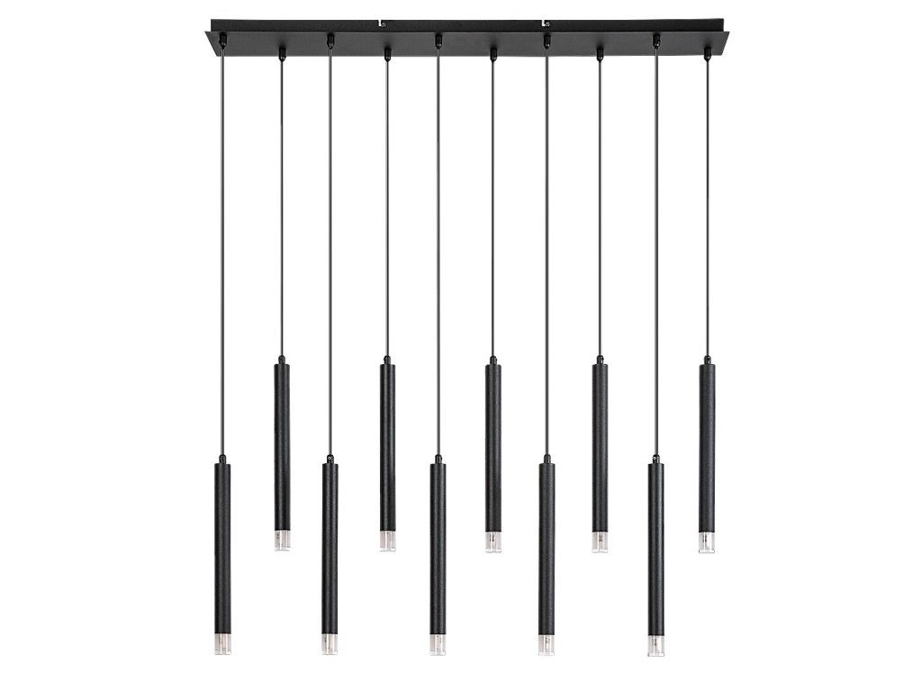 A lámpa modern és ipari jellegét a fekete színű fém kivitel hangsúlyozza. Minden hengeres fényelem átlátszó akril lámpabúrával végződik, amely közvetlen és koncentrált fényt biztosít lefelé. A függesztékek kis átmérőjének köszönhetően a lámpa finoman hat még nagyobb számú világítási pont esetén is, és nem nehézkes a térben.