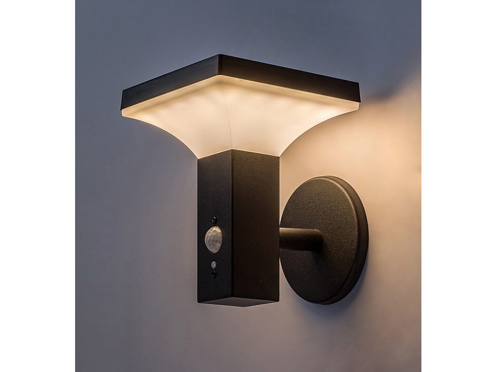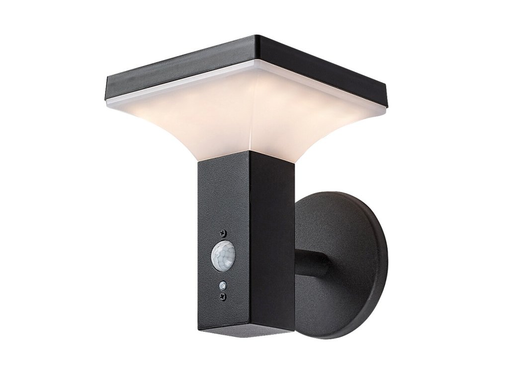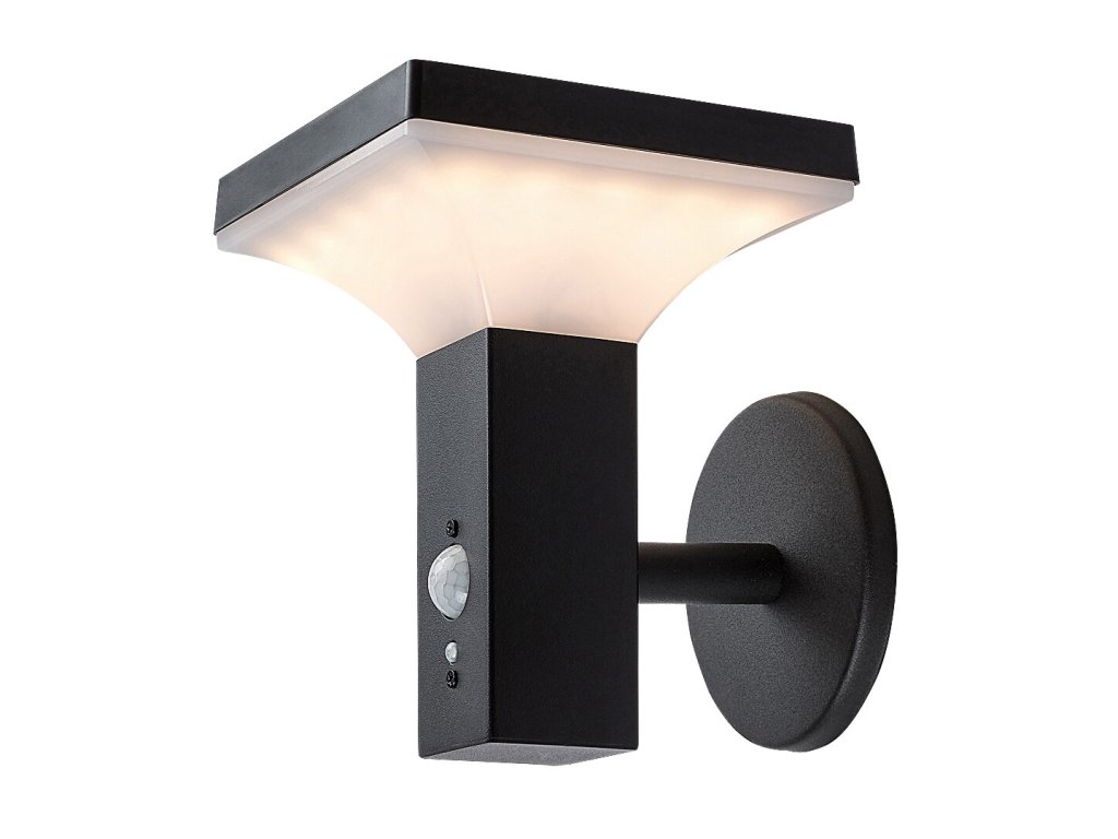 Fekete homlokzati napelemes LED lámpa mozgásérzékelővel Geleen 4W IP44