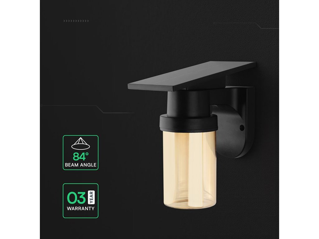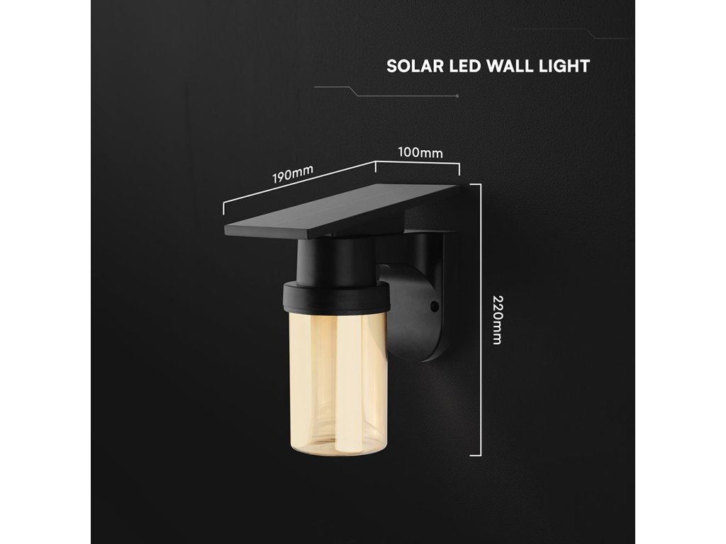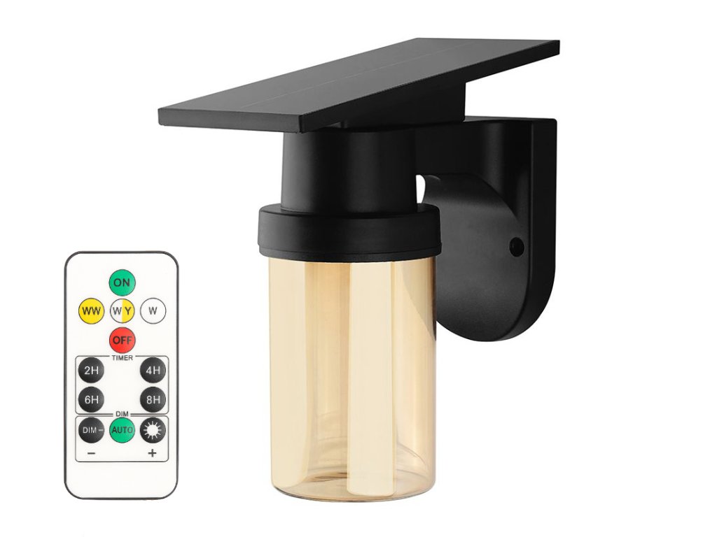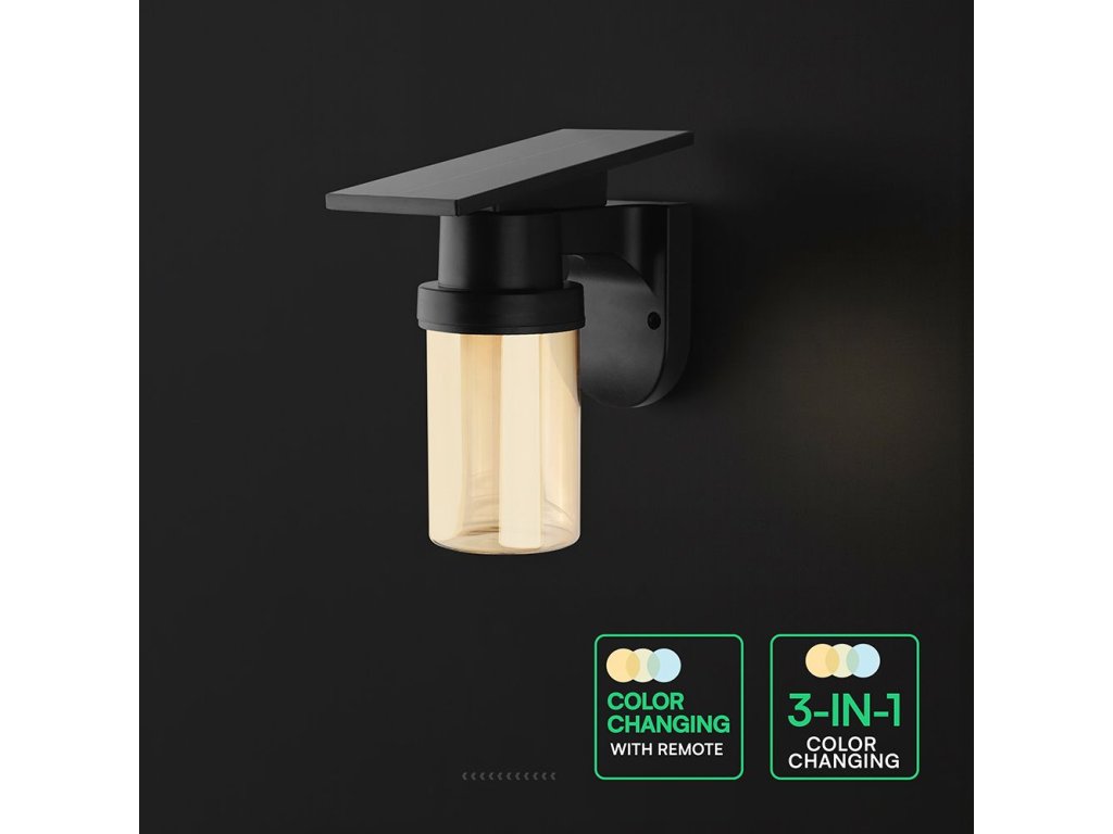 Fekete LED falikar napelemes lámpa henger alakú 0,9W IP54 CCT távirányítóval