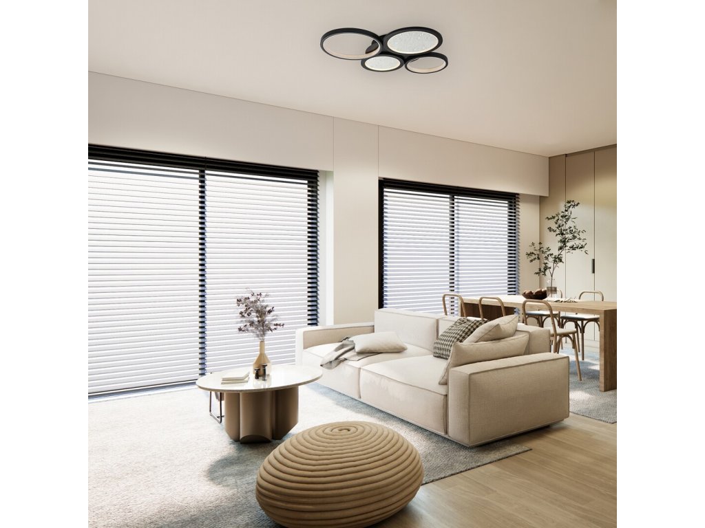 A beépített LED fényforrás 40 W teljesítménnyel 2300 lumen fényáramot biztosít, és lehetővé teszi a fényszín beállítását a meleg fehértől (3000 K) a 4000 K-es, természetes nappali fehéren át a 6500 K-es hideg fehérig. A fényerő fokozatmentesen szabályozható, és olyan praktikus funkciók is rendelkezésre állnak, mint az emlékezet, az időzítő és az éjszakai fény. A vezérlés a mellékelt távirányítóval történik, míg a fényhőmérséklet alapvető változtatása fali kapcsolón keresztül is elvégezhető.