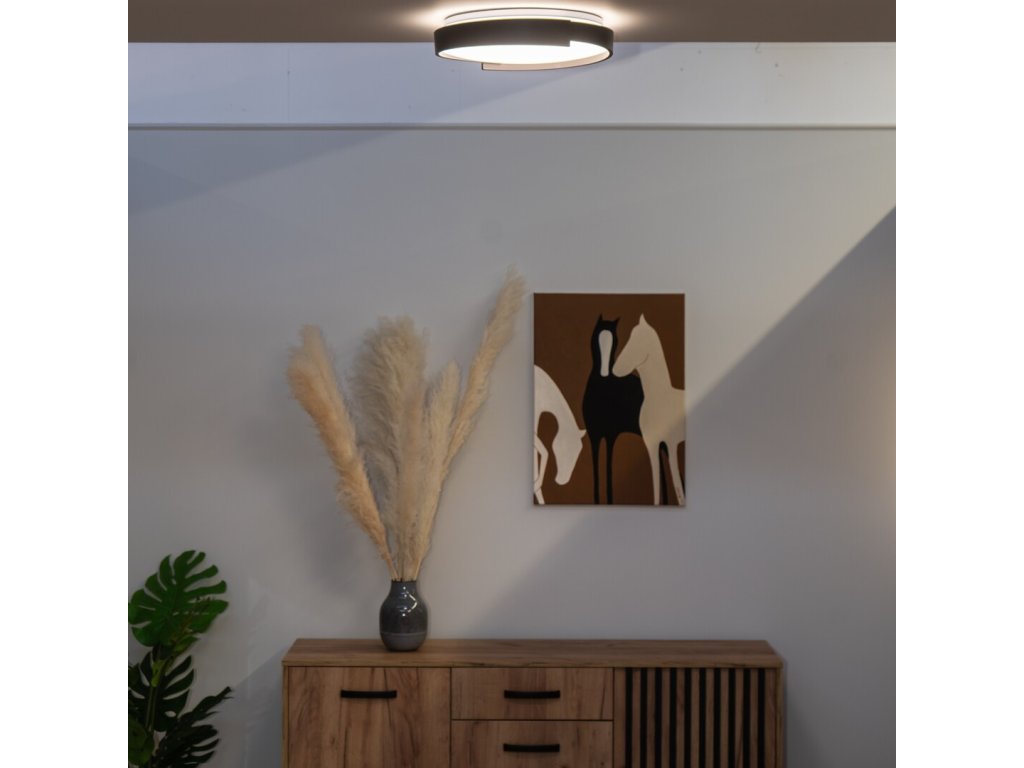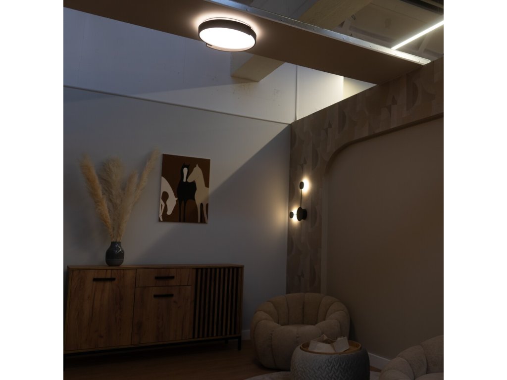 A Laleh mennyezeti lámpa funkciósságra, egyszerű megjelenésre és kényelmes kezelésre összpontosítva lett tervezve, így tökéletesen illeszkedik a modernül berendezett belső terekbe. A kerek, fekete fémtest visszafogottan és elegánsan hat, míg a fehér műanyag lámpabúra egyenletes és nem vakító fényt biztosít. A lámpa kialakítását egy finoman formázott profillal rendelkező oldalsó keret egészíti ki, amely érdekes vizuális hatást kelt.