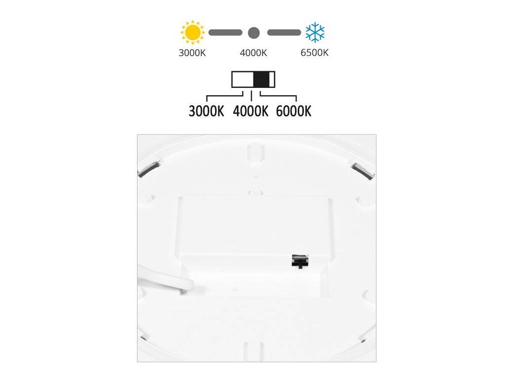 Jelentős előnye a fényhőmérséklet manuális beállításának lehetősége az aktuális igényeinek megfelelően. Az integrált DIP kapcsoló segítségével háromféle színhőmérséklet közül választhat – meleg fehér (3000 K), semleges nappali fehér (4000 K) vagy hideg fehér (6000 K). Ez lehetővé teszi a helyiség hangulatának beállítását a hangulatos esti világítástól a világos és koncentrált munkalámpáig.