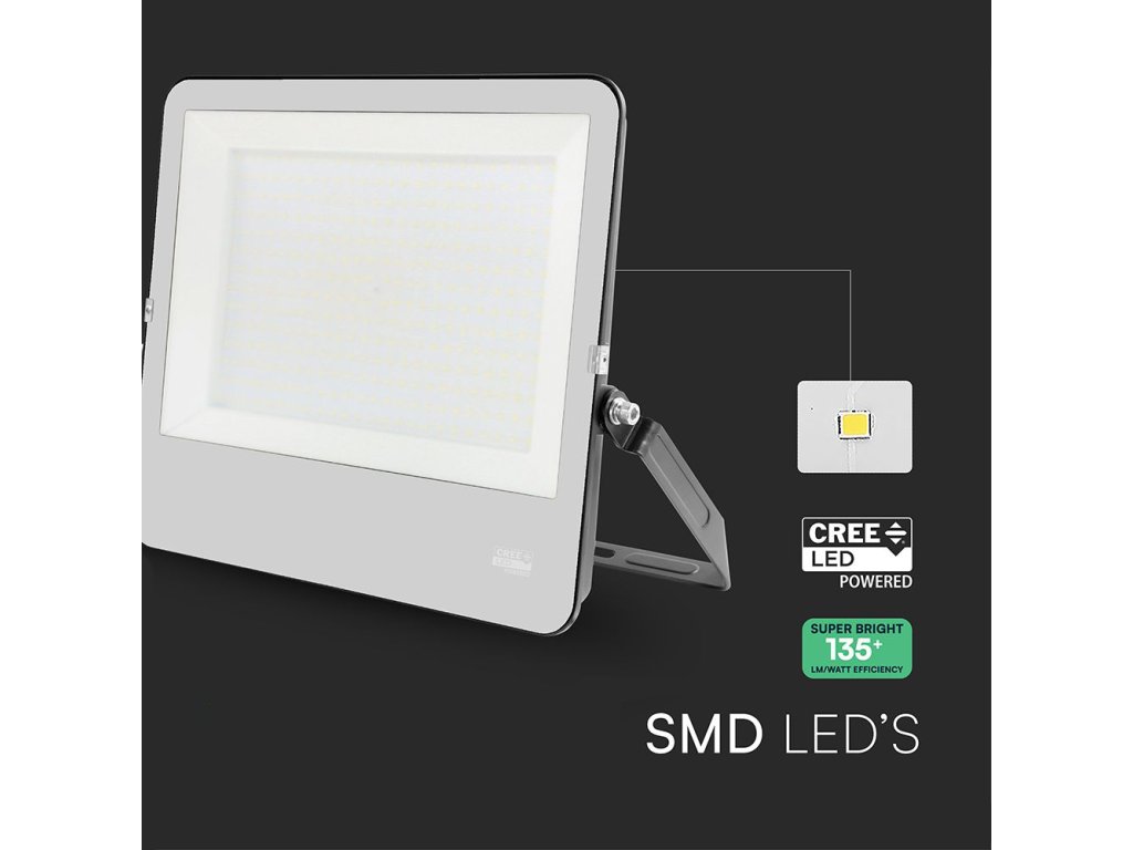 A 300 W teljesítményű LED reflektor modern és energiatakarékos megoldást kínál kültéri és beltéri területek intenzív megvilágítására. A kiváló minőségű CREE SMD LED chipeknek köszönhetően akár 135 lm/W fényhatékonyságot ér el, ami 34 440 lumen hasznos fényáramot jelent – ideális helyettesítője a hagyományos halogén reflektoroknak. Azonnali, teljes teljesítményű indítás villódzás nélkül, stabil és kellemes fényt biztosít, amely alkalmas mind munkahelyi, mind biztonsági világításhoz.