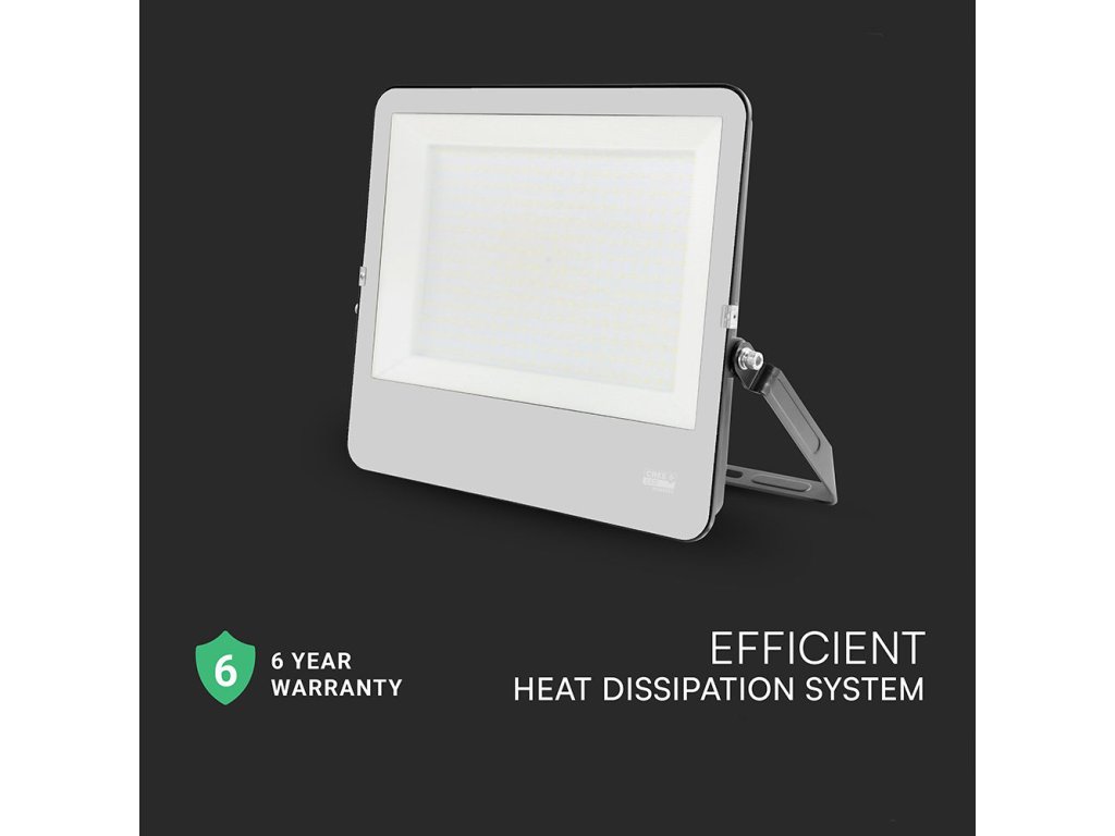 A prémium alumíniumból készült, robusztus test modern hőelvezetéssel garantálja a akár 30 000 órás élettartamot és a stabil működést még nehéz körülmények között is. A korrózióálló bevonat és az IP65 védelem megvédi a reflektort a portól, az esőtől és a nedvességtől, így ideális választás épülethomlokzatokra, ipari területekre, sportpályákra, parkolókra, reklámterületekre vagy kereskedelmi terekbe. A matt előlap egyenletes fényeloszlást biztosít és csökkenti a nem kívánt tükröződést.