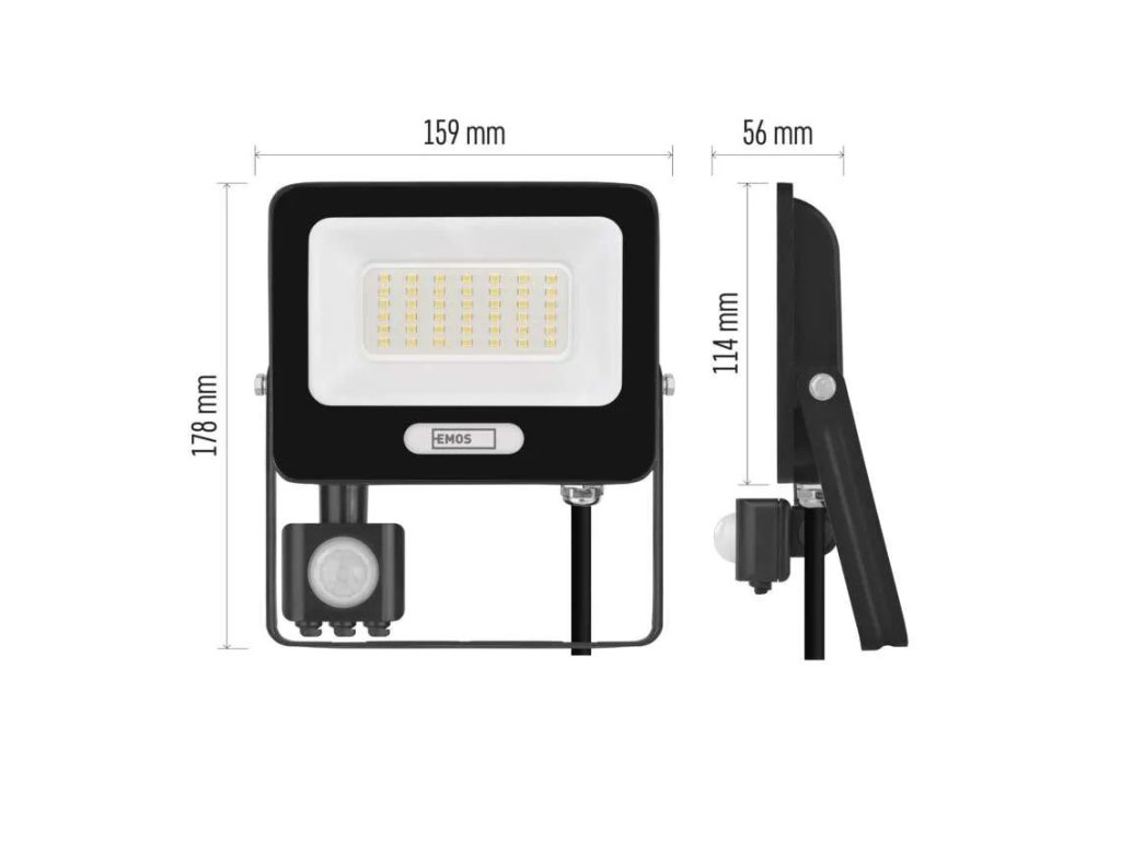 A konstrukció része egy praktikus ferde szerelőkonzol, amellyel könnyen beállítható a pontos világítási irány, és a reflektor bonyolultabb módosítások nélkül rögzíthető a homlokzatra, falra vagy más felületre. A gyors csatlakoztatáshoz egy 25 cm hosszú, gumis köpenyes tápkábel szolgál, amely biztonságos és megbízható csatlakozást biztosít. A reflektor bekapcsolás után azonnal teljes teljesítménnyel világít, villogás nélkül működik, és a modern LED technológiának köszönhetően jelentősen csökkenti a működési költségeket.