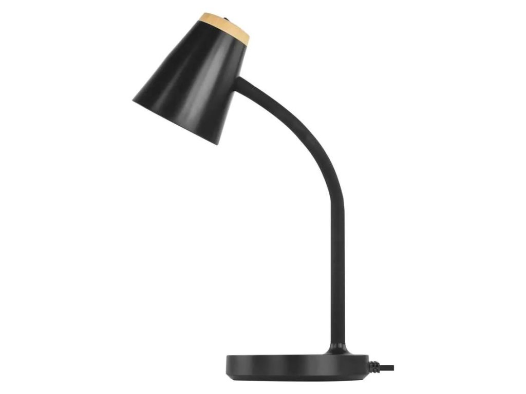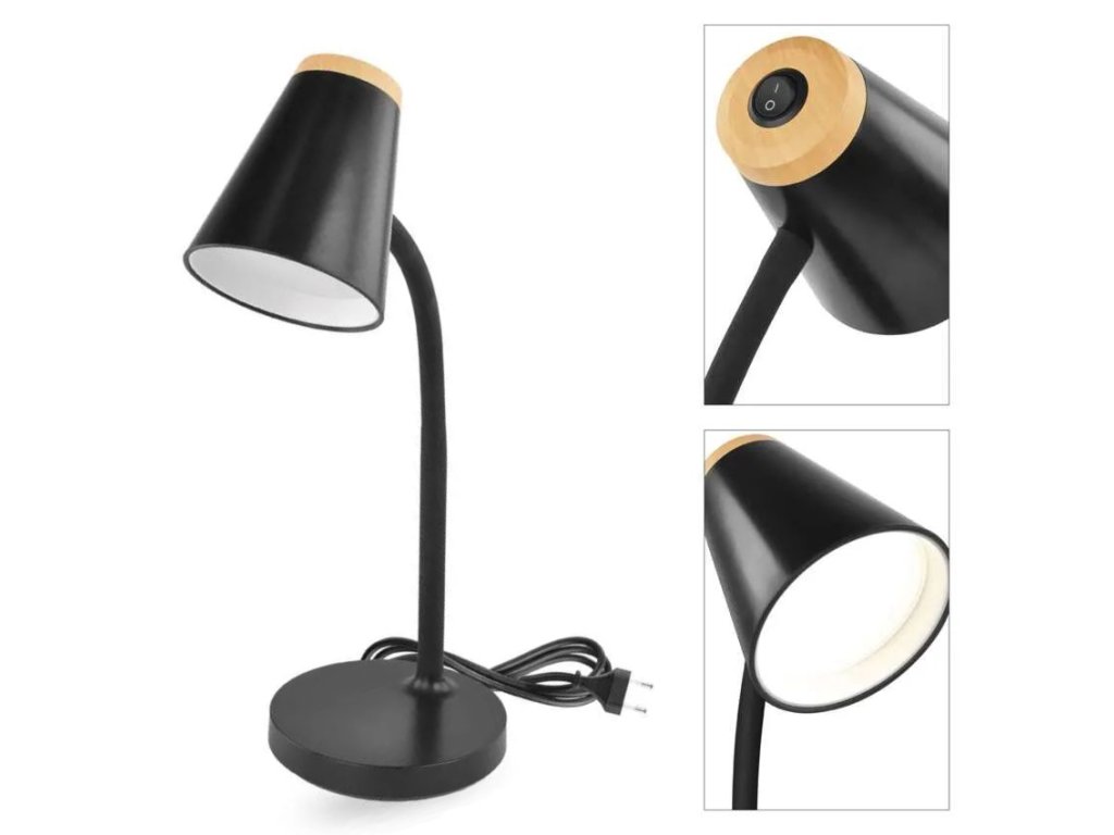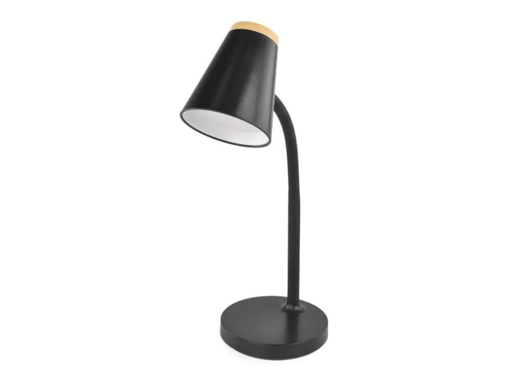 A lámpa hajlékony, gumírozott nyakkal van felszerelve, amelynek köszönhetően könnyen oda irányíthatja a fényt, ahová csak szüksége van rá. A kezelés maximálisan kényelmes – a praktikus kapcsoló közvetlenül a lámpa fején található. A minimalista felületet fa utánzatú dekoráció egészíti ki, amely az egész kialakításnak meleg, természetes megjelenést kölcsönöz.