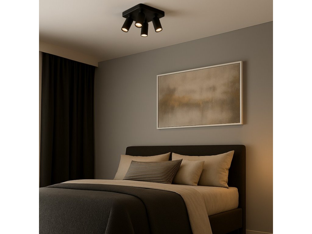 A Yorli mennyezeti lámpa négy fényforrással funkcionális és célzott világítást biztosít a modern belső terekbe. Egyszerű formája, letisztult vonalai és fekete kivitelezése univerzálissá teszi, amely lakó- és technikai terekbe egyaránt alkalmas.