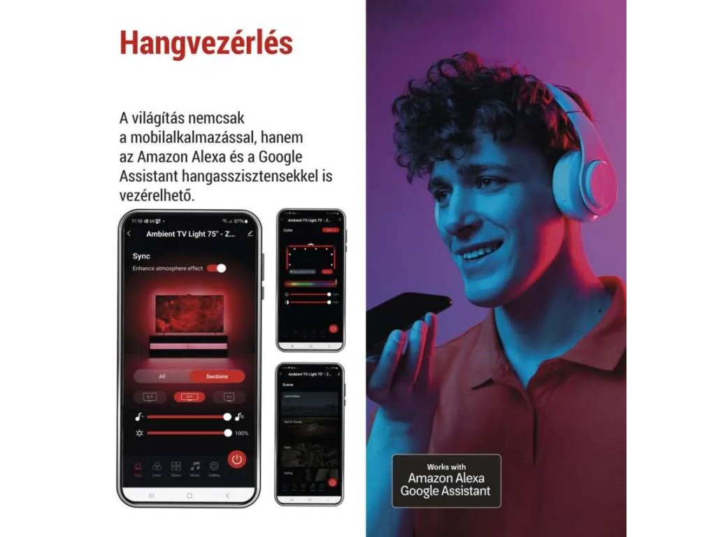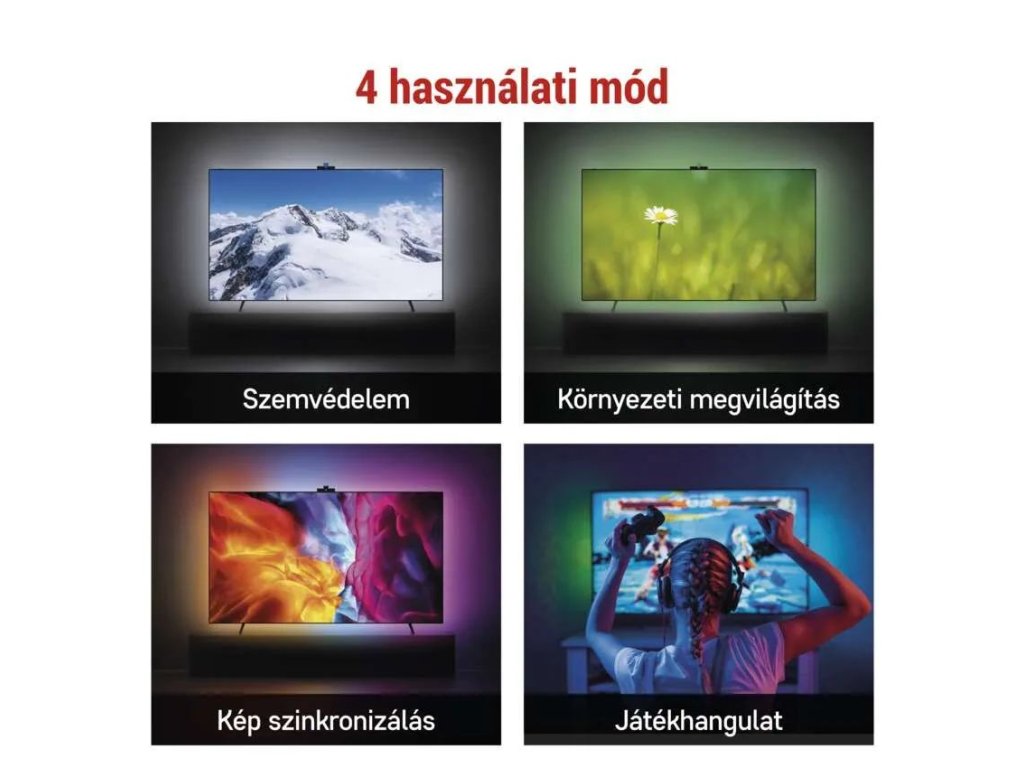 Ez az intelligens, környezeti LED rendszer ideális mindazok számára, akik szeretnék kellemesebbé tenni a televízió nézését, egyedi hangulatot teremteni a szobában, és egyúttal megóvni szemüket az erős átmenetekkel szemben a világos kijelző és a sötét környezet között.