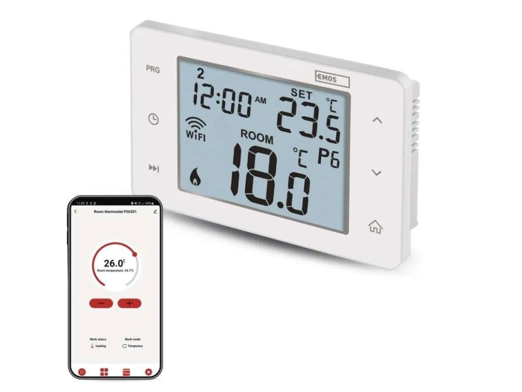 P56201 Digitális szobatermosztát, amely a fűtőrendszerek automatikus vezérlésére szolgál lakásokban, házakban és irodákban, beállítható időbeosztás szerint.