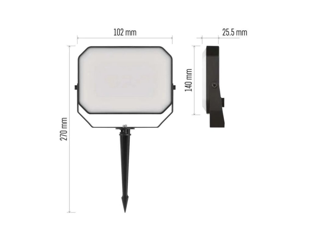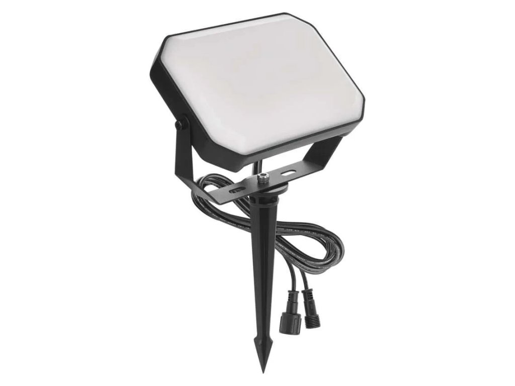 A strapabíró kialakítás IP65 védettséggel még a nehezebb kültéri körülményeket is kibírja. A reflektor minőségi műanyagból készült, matt PC diffúzorral, és egyszerűen a földbe szúrható vagy a mellékelt tartozékok segítségével szilárd felületre rögzíthető. Az 1,5 m hosszú tápkábel elegendő rugalmasságot biztosít a telepítés során.