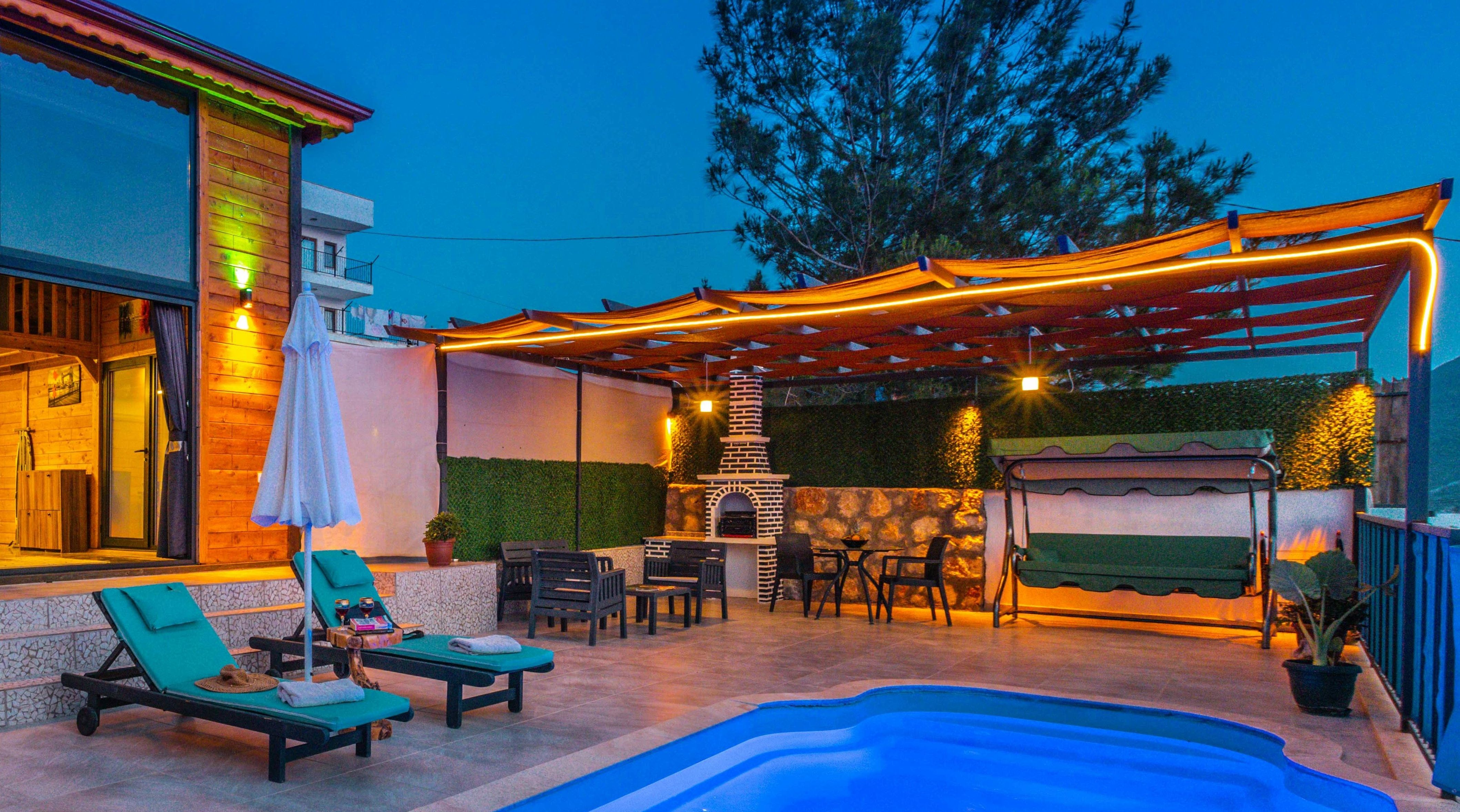 A LED szalagok és fényfüzérek tökéletes hangulatvilágítást biztosítanak. Feltekerhetők a korlátra, a pergola teteje alá vagy a terasz peremére. Egyes típusok okostelefonnal vezérelhetők, és a színek hangulat szerint változtathatók.