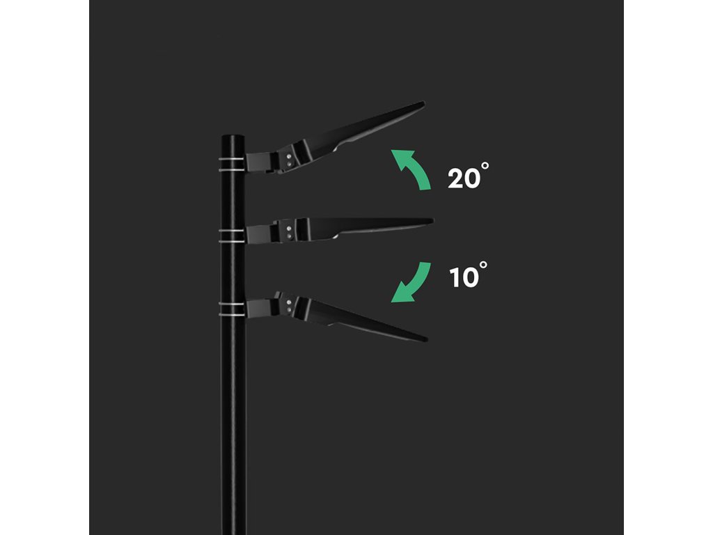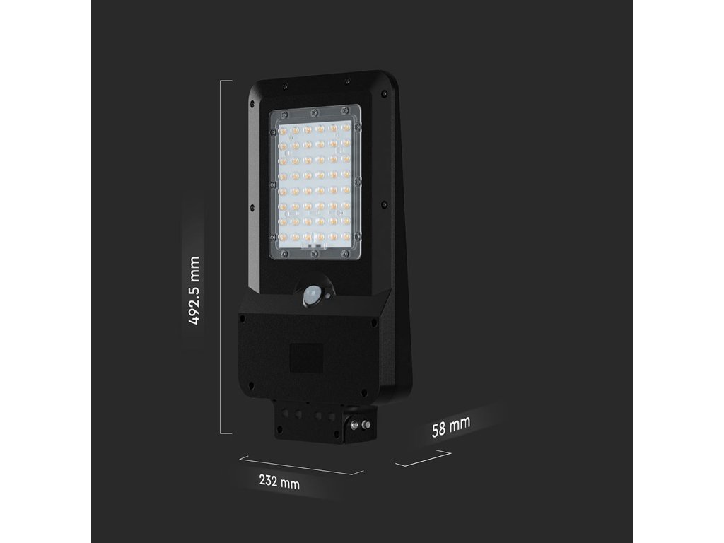 A beépített mozgásérzékelővel ellátott napelemes közvilágítási LED lámpatest energiatakarékos és praktikus megoldást kínál utak, kertek, udvarok vagy parkolók megvilágítására anélkül, hogy hálózati csatlakozásra lenne szükség. A nagy teljesítményű, 12,5 W-os monokristályos napelem biztosítja az akkumulátor gyors töltését, amely a 7,4 V / 5400 mAh kapacitásnak köszönhetően a választott üzemmódtól függően akár 60 órás üzemidőt tesz lehetővé. A lámpatest 20 W teljesítményt és 1600 lumen fényáramot kínál, így elegendő, egyenletes fényt biztosít a kültéri területeken való biztonságos mozgáshoz.