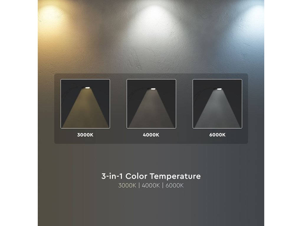 A lámpatest a világítás színhőmérsékletének beállítását lehetővé teszi a készülékházon található intelligens gomb segítségével - választható meleg (3000 K), természetes nappali (4000 K) vagy hideg fehér (6000 K) fényszín. A gomb hosszú megnyomásával könnyen válthat az egyes fényszínek között, a memóriafunkció pedig biztosítja, hogy a lámpatest a legutóbb kiválasztott beállítást használja újraindítás után.