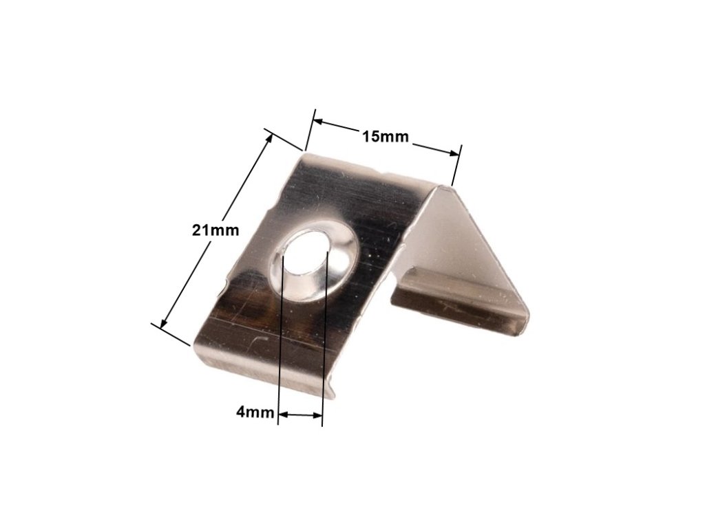 Tartó a sarokprofilhoz R2. Méretek 21x15mm. A csavarfurat átmérője 4 mm. Csavarok nélkül kapható.
