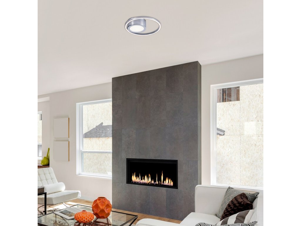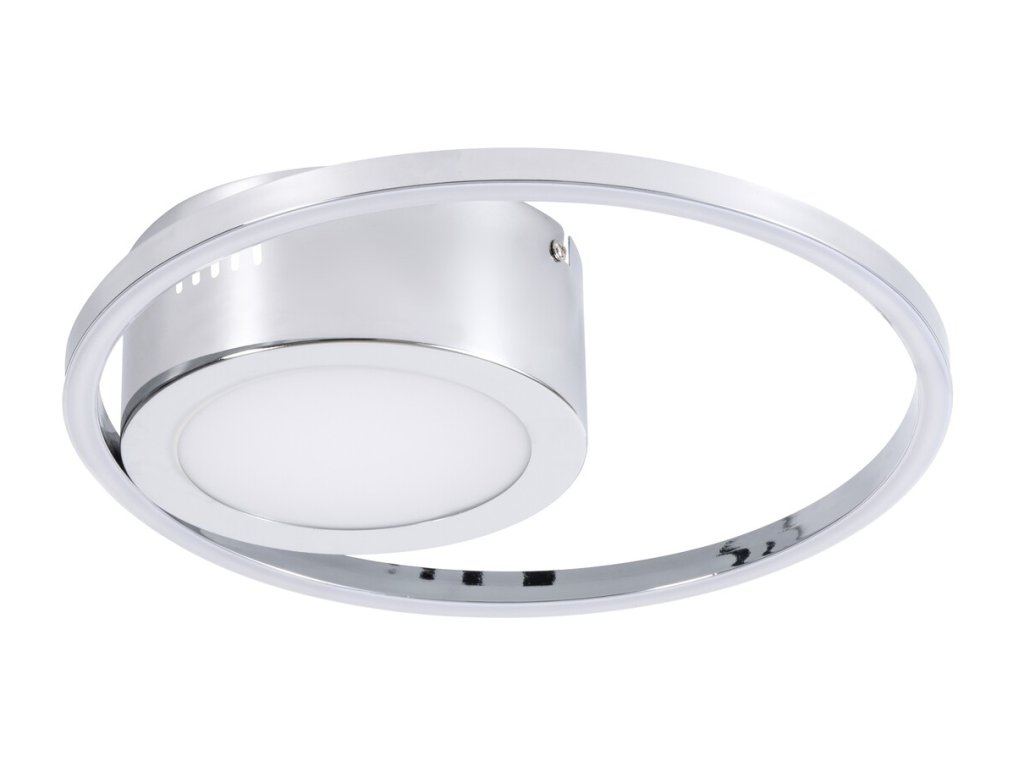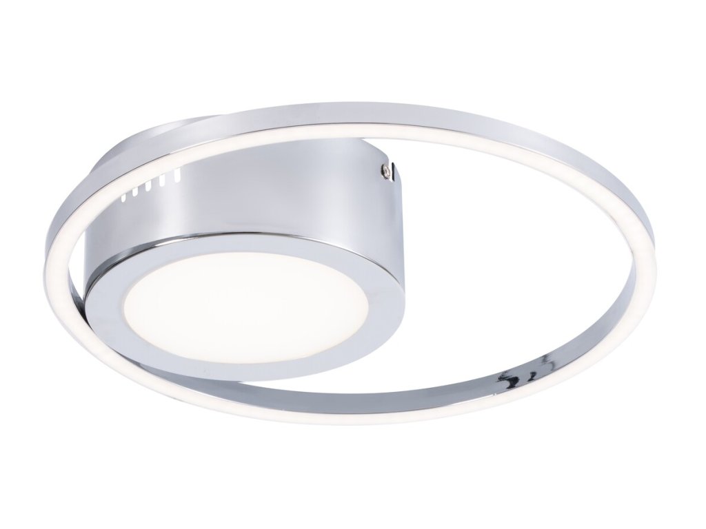 A két összekapcsolt kör alakú elemnek köszönhetően a lámpatest érdekes vizuális hatást kelt, amely bármilyen modern belső teret feldob. Megjelenése mellett kompakt méreteivel is tetszik - a lámpatest teljes magassága mindössze 65 mm, ami alkalmassá teszi az alacsonyabb belmagasságú helyiségekbe való elhelyezésre.