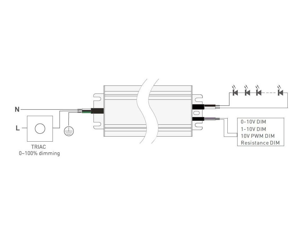 Ennek a tápegységnek az az előnye, hogy univerzálisan szabályozható, mivel több fényerőszabályozási módot is támogat. A fényerő klasszikus TRIAC fényerőszabályzóval, vagy 0–10 V, 1–10 V, 10 V PWM vezérlőjelekkel vagy 0–100 kΩ közötti ellenállással szabályozható. Ez lehetővé teszi a könnyű hozzáigazítást a konkrét rendszerhez és a környezethez, amelyben a világítás telepítve lesz.