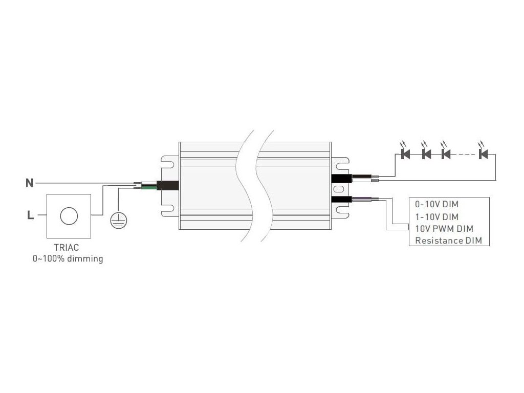 Ennek a tápegységnek az az előnye, hogy univerzálisan szabályozható, mivel több fényerőszabályozási módot is támogat. A fényerő klasszikus TRIAC fényerőszabályzóval, vagy 0–10 V, 1–10 V, 10 V PWM vezérlőjelekkel vagy 0–100 kΩ közötti ellenállással szabályozható. Ez lehetővé teszi a könnyű hozzáigazítást a konkrét rendszerhez és a környezethez, amelyben a világítás telepítve lesz.